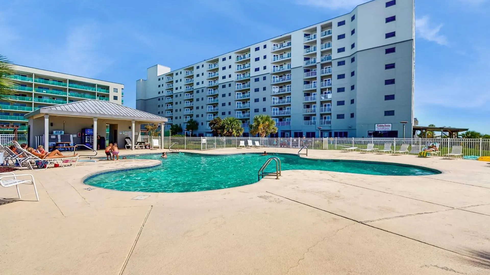 La cocina bien equipada en el Apartamento Plantation East 2205 está equipada con lavaplatos y un horno para las necesidades de los huéspedes. Ofrece una piscina para que los huéspedes se relajen.